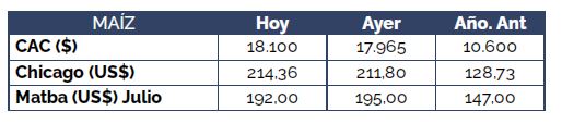 En cuanto al cereal de la campaña 2021/22, hubo menos ofertas abiertas de compra con el tramo marzo en US$ 190/t y abril ubicándose en US$ 185/t. Esta última posición, obtuvo una caída de US$ 5/t entre ruedas.