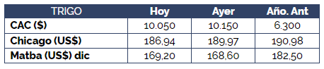 En el día de hoy, el precio ofrecido abiertamente por compra de trigo no sufrió grandes variaciones en relación a la jornada del día de ayer, con un leve repunte en la actividad comercial.