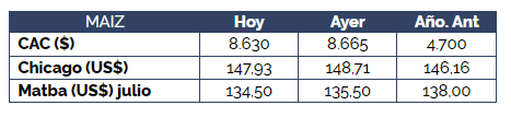 En la jornada de hoy, el precio de compra por maíz disponible se mantuvo en los US$ 145/t; sin variación en relación al resto de la semana. Sin embargo, no se descartan mejoras por lote en esta posición. Por maíz con descarga en diciembre/enero el valor abierto se ubicó en los US$ 145/t, sin descartar mejoras.