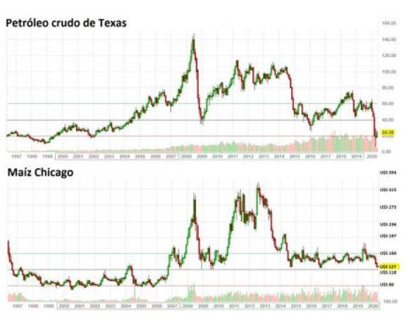 El precio del petróleo se encuentra en torno a U$S 25/barril, luego de recuperarse de mínimos nunca vistos hace menos de un mes, pero debe alcanzar al menos U$S 40/barril, para que el precio del etanol se recupere, cubrir sus costos de producción y reabrir las plantas procesadoras. Las subas del precio del petróleo están directamente relacionadas con la reactivación económica global, por lo que tiene gran relevancia el ritmo de reactivación de la actividad global, con el ritmo de suba de estos energéticos.