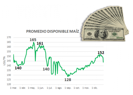 Dada la brecha de disponibilidad internacional de maíz nuevo entre abril y principios de junio, los precios de maíz normalmente, evolucionan a la suba en ese período de tiempo, mientras que, pasado el 10 de junio, comienza la caída.