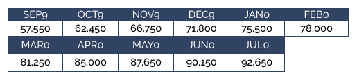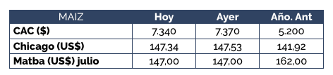El precio ofrecido abiertamente por maíz disponible fue de US$ 125/t, aunque este precio se incrementaba en US$3/t para entregas a partir del 30/9. El precio se ubicó en los US$ 133/t para noviembre y US$ 137/t para el mes de diciembre. Además, se ofrecieron US$ 140/t para negocios con descarga en enero de 2020.