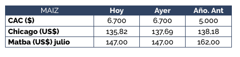 En la jornada de hoy, el valor ofrecido por maíz contractual fue de US$ 123/t, pudiendo haberse obtenido mejoras en este valor. Esto significó una suba con respecto al valor ofrecido en el día de ayer. Puede haber existido una quita en este valor si la oferta de mercadería priorizaba la cercanía en la descarga.