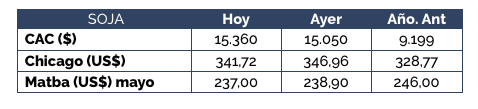 En la jornada de hoy, tuvimos una marcada caída en el valor abierto de compra por soja condición fábrica; el valor generalizado en la rueda de negociaciones fue de US$ 248/t, US$ 7/t por debajo del valor ofrecido en la jornada previa. Con la oferta de mercadería con bases de venta en valores superiores, y exigiendo mayor paridad con los mercados a término locales, los negocios fueron escasos.