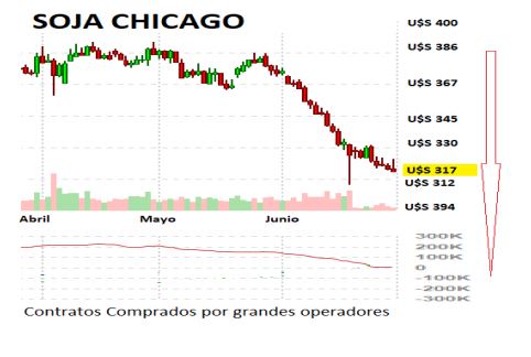 La reacción de los inversores da la pauta que los recortes de precio en la soja de Chicago, que alcanza una baja de U$S -70/TN, no se espera sean reversibles en el corto plazo. Significa que los actuales U$S 317/TN vinieron para quedarse o seguir en busca de precios más bajos.