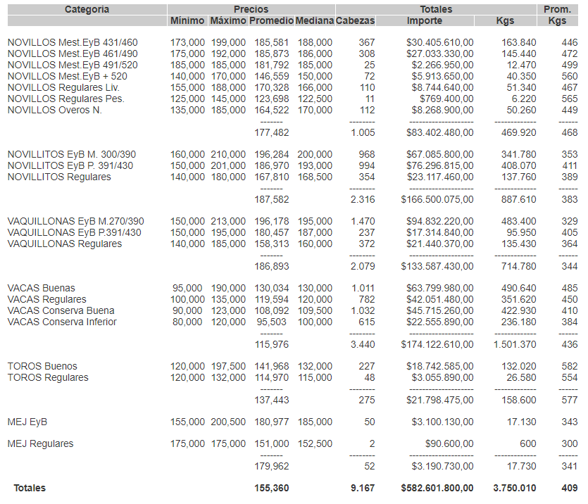 MercadosCierre mercado de hacienda para el día 30 de abril 30 de abril de 2021FacebookTwitterWhatsAppTelegramEmailImpresión PRECIOS DEFINITIVOS POR CATEGORIA EN EL MERCADO DE HACIENDA DE LINIERS PARA EL VIERNES 30/04/2021MÁS INFORMACIÓN AGROPECUARIA CLIQUEÁ AQUí