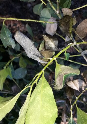 La infección se inicia en la parte media de la planta. Allí, se observa un micelio blanquecino que sube hacia la parte superior de la rama. “En el envés de las hojas se observa una especie de fieltro blanquecino que cubre la toda la superficie de la hoja”, afirmó la referente del laboratorio de Protección Vegetal del INTA Montecarlo y apuntó que: “Si no se la controla a tiempo, en dos años puede provocar la muerte de la planta”.