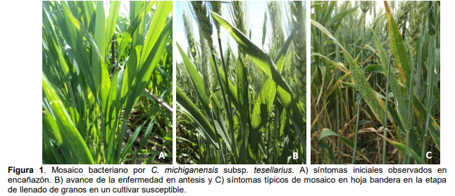El mosaico bacteriano del trigo es una enfermedad considerada de menor importancia a nivel mundial. Fue descubierta en Nebraska (EEUU) en el año 1976 y observada desde el año 2016 en Entre Ríos sobre algunos cultivares de trigo y confirmada mediante técnicas específicas (aislamientos en medios diferenciales, pruebas microbiológicas y bioensayos) en 2018 por el Centro de Investigaciones en Fitopatologías de La Plata (CIDEFI).