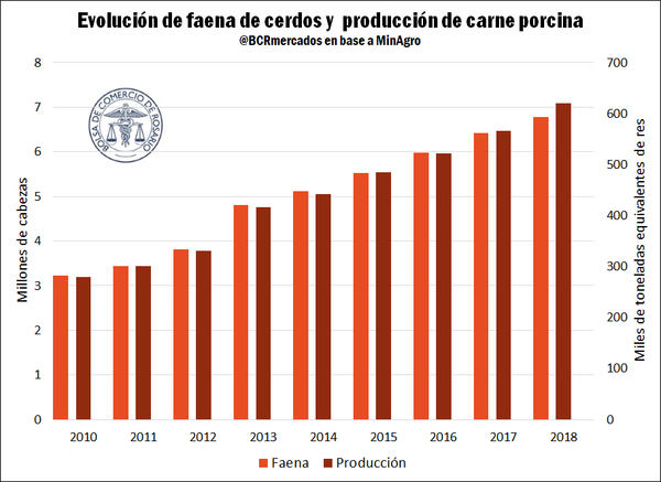 La industria de la carne porcina de Argentina viene mostrando un muy buen desempeño en el 2019, con aumentos en los registros de faena, producción, comercio exterior y consumo interno. Con un contexto internacional favorable y tras la reciente apertura del mercado chino, en el marco de una epidemia de peste porcina africana que está haciendo caer fuertemente la producción del mayor consumidor del mundo, el sector porcino muestra gran potencial de desarrollo.
