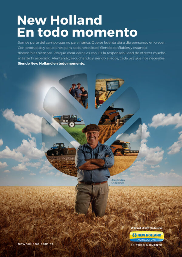 “Este nuevo claim resume un ADN que nos representa a nivel global y que alcanza a los agricultores de todo el mundo. Somos un socio estratégico para el negocio de los productores y esa es nuestra marca registrada, nuestro compromiso. Estar ‘En Todo Momento’ es el reflejo de lo que somos como empresa”, expresó Juan Martín Giustetti, Director Comercial de New Holland Agriculture en Argentina.
