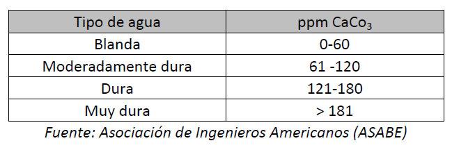 De acuerdo al grado de dureza podemos clasificar el agua según diferentes criterios, uno de los más utilizados se muestra en la siguiente tabla: