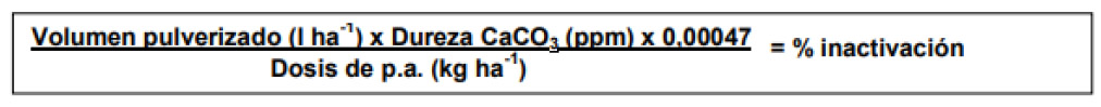Obviamente hay una relación directa entre la dureza del agua y la inactivación del glifosato. Además podemos mencionar que el volumen de aplicación también es un factor que podemos modificar si queremos corregir la inactivación alcanzada (menor volumen, menor concentración de cationes), como así también la dosis de activo a utilizar.