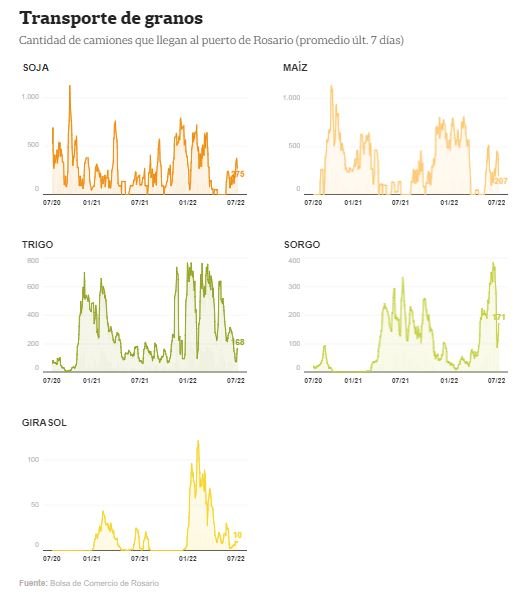 La medida, entre otras regiones, afectó el ingreso de camiones a los puertos cerealeros, que, según fuentes del sector privado, motivó que el ingreso de unidades a las terminales portuarias cayera 80%.