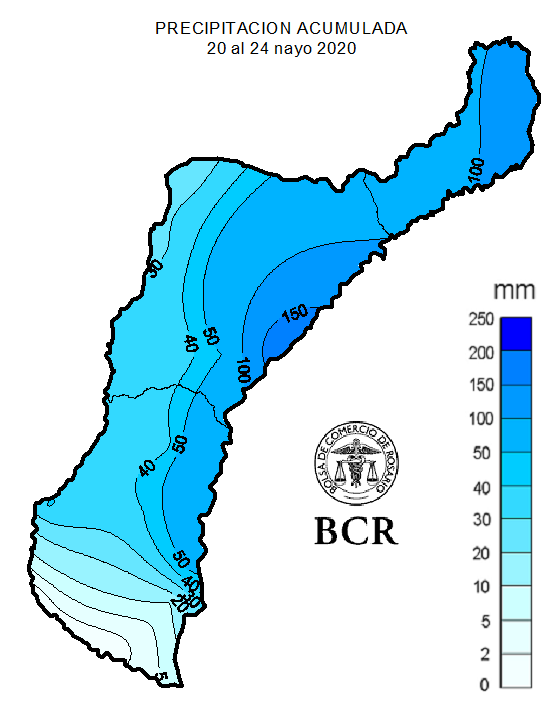 Las lluvias más importantes se recostaron sobre el margen este. El registro más importante fue el de Paso de los libres con 194 mm en la provincia de Corrientes. El acumulado de los cuatro días de tormentas dejó 90 mm en Monte Casero y 64 mm en Mercedes. En Misiones, Bernardo de Irigoyen marcó 124 mm, 104 mm en Iguazú y 80 mm en Overá. En Entre Ríos el valor máximo quedó registrado en Concordia con 93 mm. En la provincia entrerriana, las lluvias muestran un claro gradiente hacia el noreste, dejando acumulados de 30 a 60 mm en buena parte del territorio. Estas lluvias son muy importantes para comenzar a revertir la pérdida de agua que ha sufrido el Río Paraná y ha afectado su navegabilidad.