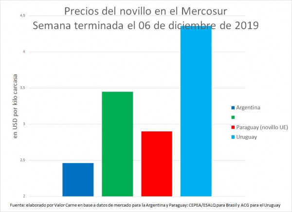Argentina: con un alza 1,5 centavos (más de medio por ciento) cerrando en USD 2,46, se convirtió en la única plaza con subas, aunque conservó el lugar del precio más bajo de la región. Los frigoríficos, en conjunto, incrementaron sus ofrecimientos, en $1,20 por kilo carcasa, según nuestro promedio ponderado, lo que se sumó a una devaluación del 0,2%.