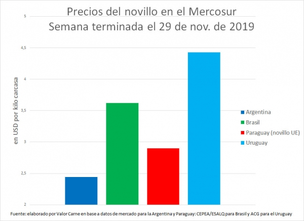 Paraguay: acá también se anotaron mayores precios, aunque de manera más modesta. El novillo terminado cerró en USD 2,90, siete centavos más (2%)