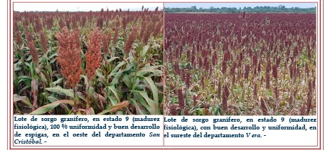 Se recuerda que los rendimientos promedios obtenidos fueron los siguientes: • San Martín y San Jerónimo, se registraron rendimientos promedios de 45 – 48 – 50 qq/ha, con un máximo de 60 qq/ha, • Castellanos, Las Colonias, La Capital, San Cristóbal, San Justo y San Javier, con rendimientos promedios 35 – 38 – 40 a 45 qq/ha, con un máximo de 52 qq/ha, • General Obligado y Vera, rendimientos promedios que fluctuaron entre 26 – 28 – 30 qq/ha, con un máximo de 35 qq/ha. Se observó, el siguiente estado fenológico: R “estados reproductivos”, R8 (madurez plena).