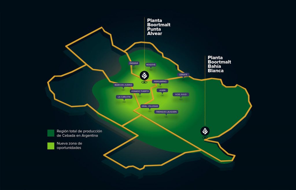 Boortmalt posee en Argentina dos Malterias ubicadas en Bahía Blanca y en Punta Alvear (Santa Fe), desde las cuales abastece a los principales mercados cerveceros de América Latina, que requieren una producción de cebada bajo exigentes parámetros de calidad.