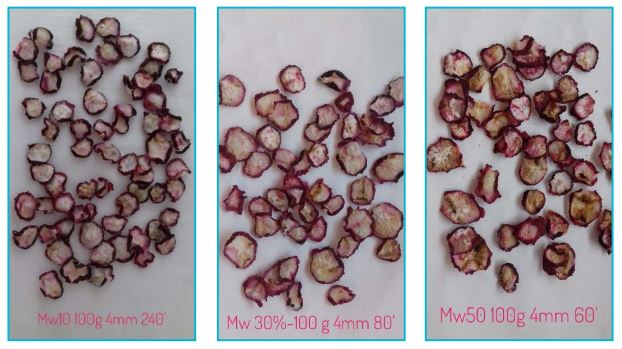 Las microondas son, un método innovador que puede ser utilizado para el secado de alimentos. Permite reducir los tiempos de secado con respecto a otros métodos disminuyendo costos de operación y energía. Sin embargo, debemos tener en cuenta que la exposición prolongada de los vegetales a las microondas podría generar un impacto en la calidad del producto final, afectando la calidad organoléptica y nutricional de los mismos. Por lo cual, es necesario conocer su modo de aplicación para alimentos.