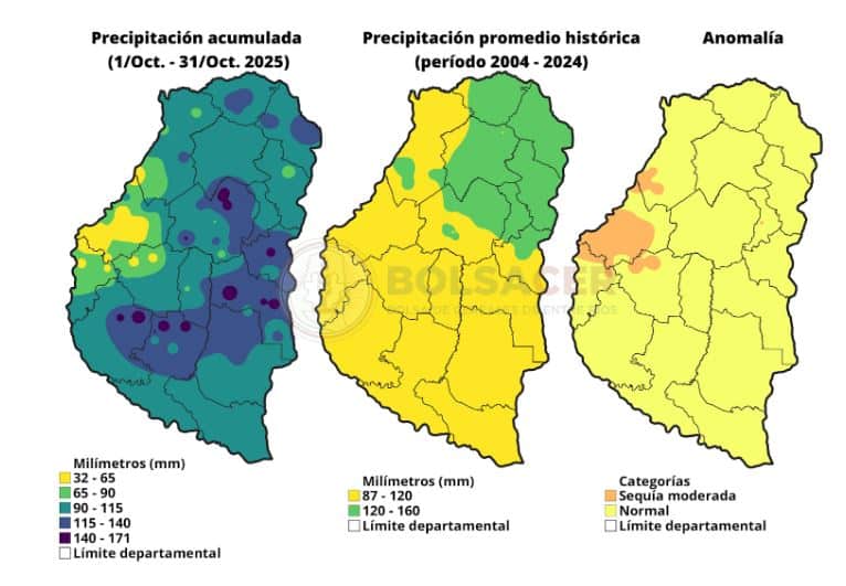 Este comportamiento rompe con el patrón climático habitual, que suele mostrar un incremento de lluvias del sudoeste al noreste de la provincia. La franja central volvió a repetir el déficit ya observado en septiembre.