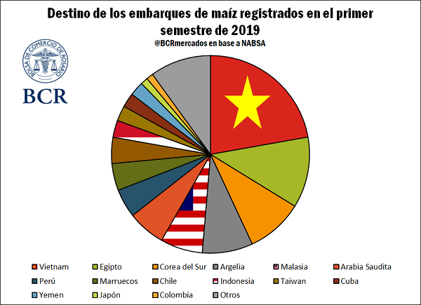 Vietnam es, a su vez, el país a donde llegaron la mayor cantidad de los despachos de exportación del cereal en lo que va de 2019 según los datos de NABSA, con importaciones de más de 4 Mt, un 22,2% del total. En quinto lugar aparece Malasia con cerca de 1,25 Mt, lo que representa un 6,9% de los embarques acumulados. En conjunto, la región del Sudeste Asiático se hicieron con casi 5,8 Mt de maíz, un 32,1% del total.