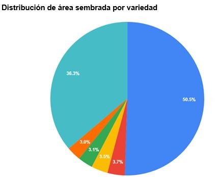 A diferencia de los años anteriores, donde el 60% del área estaba ocupada por las mismas 5 variedades, en este ciclo agrícola puede notarse “una gran concentración de área sembrada en una sola variedad”. En tanto, que para complementar el mismo 60% del año pasado, lo logramos con 4 variedades pero con una participación bastante menor”.