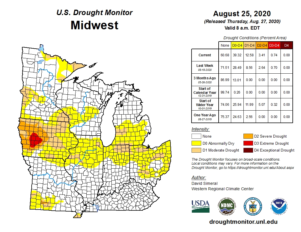 Por tercera semana consecutiva, los precios de la soja cerraron en alza en la Bolsa de Chicago, donde los contratos septiembre y noviembre sumaron un 5,52 y un 5,06%, tras pasar de 330,97 a 349,25 y de 332,44 a 349,25 dólares por tonelada. Así, la oleaginosa alcanzó el nivel de precios más alto desde junio de 2018. Estas mejoras fueron la consecuencia de la falta de humedad sobre buena parte del Medio Oeste de los Estados Unidos, pero, sobre todo, sobre Iowa, donde las condiciones de sequía se agravaron y donde las pérdidas en potencialidad de rinde harán mella sobre el número final de la cosecha estadounidense, que no sólo ya dejó atrás toda aspiración récord, sino que se está “reperfilando”, para ver si los 110 millones de toneladas se convierten en un piso o en una meta a alcanzar. Cabe recordar que el viernes de la semana anterior el ProFarmer estimó la producción de soja en 118,72 millones de toneladas, debajo de los 120,42 millones proyectados por el USDA.