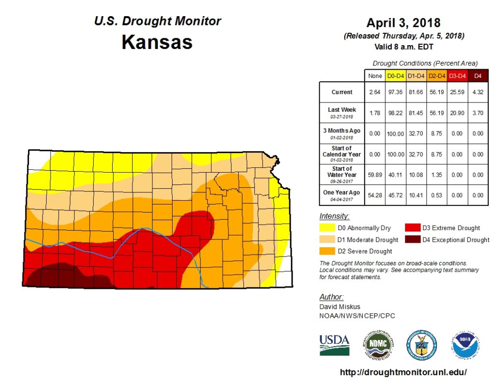 Así están los suelos en el principal Estado productor de trigo de los Estados Unidos, que en 2017 aportó 9,10 millones de toneladas, a una cosecha total de 47,37 millones: