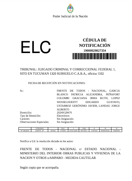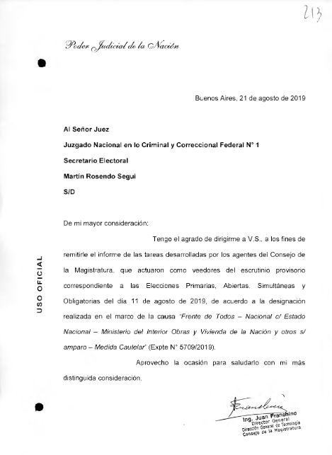 “Funcionó adecuadamente y en forma segura, tan es así que a las 21.15 se había superado la cantidad de telegramas exigidos por el juzgado”, acotaron.