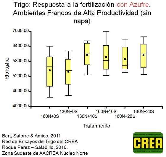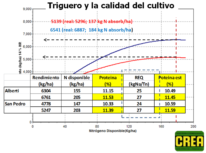 Satorre explicó que si bien Triguero no explora el efecto de la fertilización nitrogenada sobre la calidad del grano de trigo, cuando la respuesta en rendimiento se satura (ya sea con un aumento de la oferta de nitrógeno o con la disminución del rendimiento), el impacto del nitrógeno adicional agregado incide sobre el nivel de proteína por obtener.
