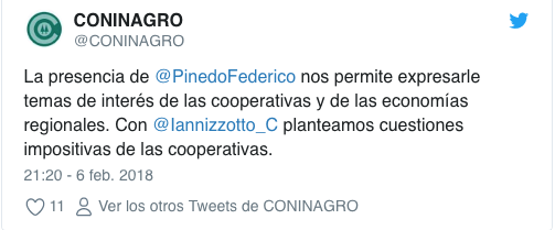 El presidente provisional del Senado, Federico Pinedo, visitó ayer la sede porteña de Coninagro y adelantó que pedirá que la Comisión de Agricultura en el Senado “siga presidida por el mellizo De Ángeli“.