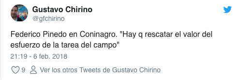 “Hay que rescatar el valor del esfuerzo de la tarea del campo”, aseguró Pinedo durante la reunión, que se difundió a través de las redes sociales.