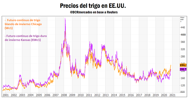 Los precios internacionales reflejaron las preocupaciones acerca de las condiciones climáticas mencionadas, con los futuros con cotización más cercana en Chicago alcanzando su valor más alto desde diciembre de 2014, y ajustando el día jueves en US$ 228,83.