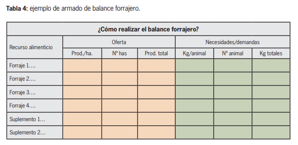 La tabla 4 muestra como cada productor debería armar su propio presupuesto y balance forrajero considerando toda la información previamente desarrollada.