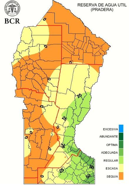 Aun con la temprana presencia de un calentamiento del Pacifico consistente con un Niño la disparidad de las reservas de agua en el suelo, de las regiones del oeste respecto del este, no pudo revertirse en lo que va del invierno y la situación no es peor gracias al predominio de circulaciones cálidas y húmedas del noreste más que por el aporte de agua de lluvia.