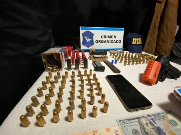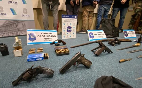 seguridad colocados; 2 handy marca Baofend; 3 pares de precintos entrelazados; 1 pasamontañas negro; 1 campera color oscura; 3 cuchillos de carnicero; 6 celulares; 1 tablet, herramientas varias, 10 cuchillos y varias municiones de diverso calibre. Además de $151.000.