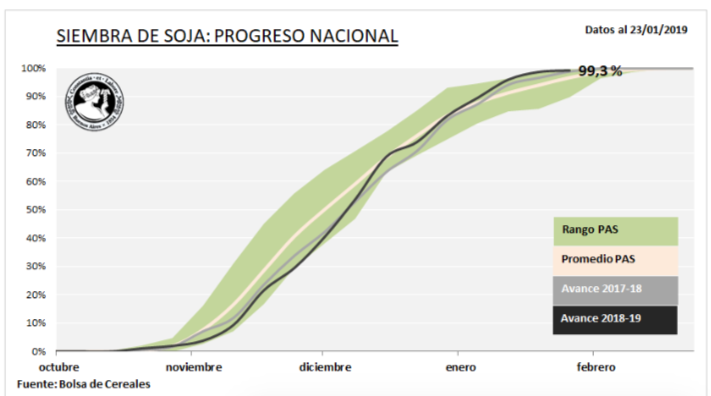 En lo que respecta a cuadros de primera, un 24,6 % del área ya transita etapas críticas de diferenciación de vainas, mientras que las siembras de segunda más adelantadas aún se encuentran en etapas de floración.