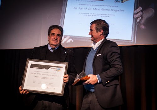 “Su solidez profesional y su actitud pionera lo pusieron siempre al frente de grandes proyectos de desarrollo de nuestra agroindustria”, destacó, entre otras cosas, el argumento del reconocimiento a la trayectoria de Mario Bragachini del INTA Manfredi, en el CITA 2018. “En toda su actividad en el exterior plantó bien arriba la bandera argentina; un orgullo para el INTA que lo cuenta en sus huestes y para todos los argentinos”, aseguró.