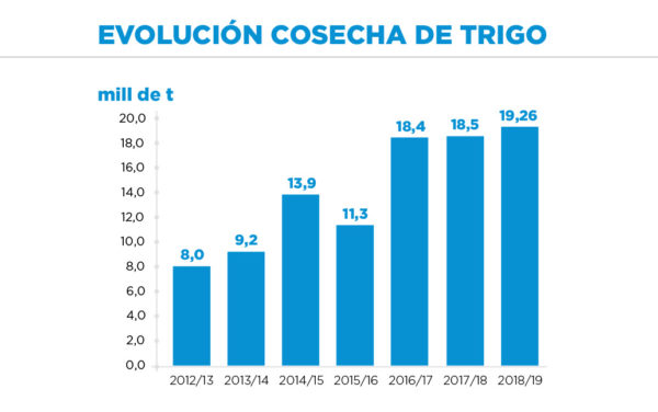 La actual campaña significó un incremento del 4,1% con respecto al año pasado cuando se alcanzó la cifra de 18,5 MM de toneladas. Es una producción con un valor estimado de 4.400 millones de dólares, de los cuales 3.000 millones provienen de la exportación de 13 millones de toneladas.