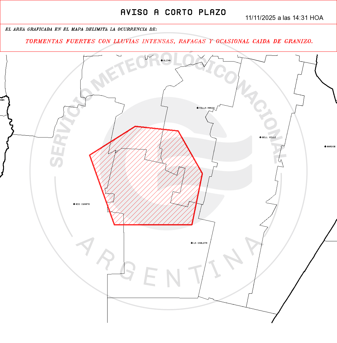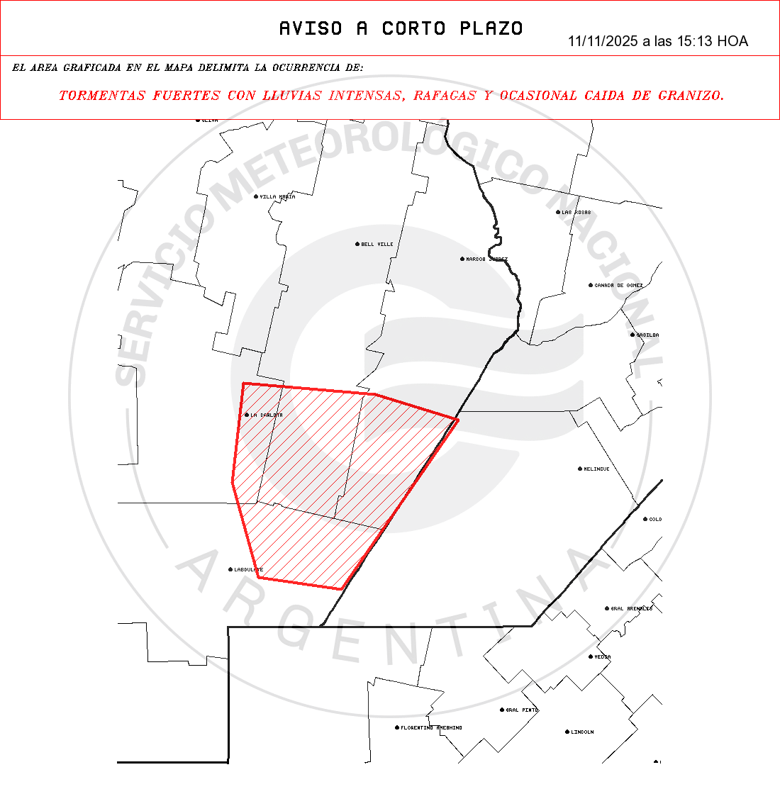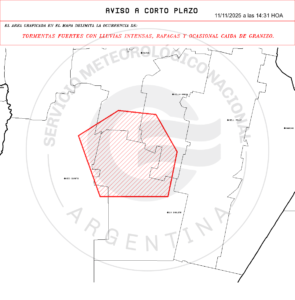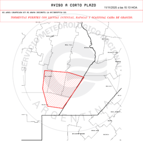 ⚠️ El Servicio Meteorológico Nacional emitió tres avisos por tormentas fuertes que afectarán amplias zonas del país. Se esperan lluvias abundantes en periodos cortos, ráfagas intensas y caída ocasional de granizo. Con acumulados que pueden superar los 30 mm, productores y comunidades rurales deben mantenerse alertas ante posibles daños en cultivos y caminos rurales.