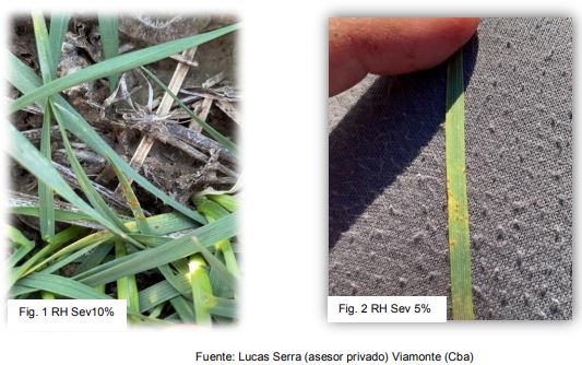 Comenzó a detectarse presencia de roya de la hoja (RH) visualizada por sus signos (uredosoros o pústulas) sobre la variedad Baguette 750, en lotes puntuales del sudeste cordobés (Monte Maíz, Colonia Bismark, Justiniano Posse, Viamonte) y en centro Sur de Santa Fe (Los Molinos). Por el momento se observa a la enfermedad en sus primeros ciclos de desarrollo en baja incidencia y severidad.