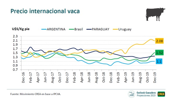 “Argentina cierra un 2019 con un récord histórico de exportación de unas 830.000 toneladas res con hueso gracias al impulso de la demanda china; lo que representa un ingreso al país de 2965.25 millones de dólares. Esto se dio por el impacto de la fiebre porcina africana sobre la producción asiática de carne de cerdo sumado a nuevas habilitaciones de frigoríficos para exportar carne a China en un marco de tipo de cambio favorable para realizar exportaciones”. Aunque, el referente CREA, aclaró que en las últimas semanas el gobierno chino está instrumentando medidas para desacelerar los precios de importación de la carne bovina luego de que en noviembre pasado se registraran máximos históricos.