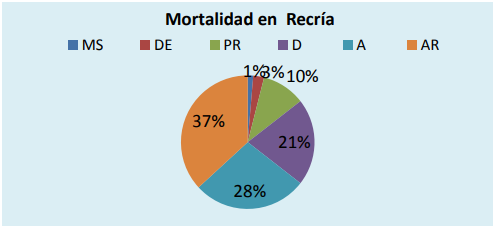 Del análisis descriptivo de los datos en la fase de recría se determino una mortalidad del 2,7%, las causas fueron: