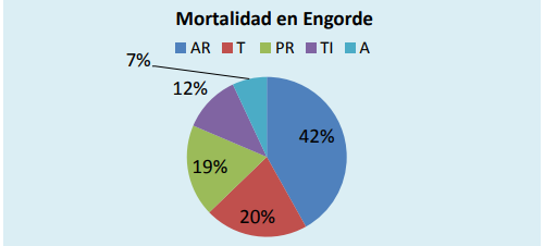 En la fase de engorde con un porcentaje de mortalidad total del 1,25 %, se determino las siguientes causas: