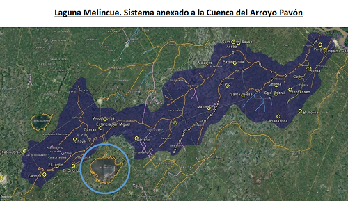 La laguna Melincué es un sistema anexado a la Cuenca del Arroyo Pavón. Esta cuenca alcanza un área de 340.834 has y una longitud de aproximadamente 90 km.