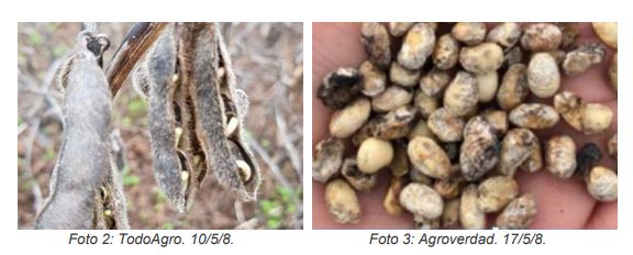 Con la persistencia de días sucesivos de alta humedad ambiente y temperaturas cálidas apareció otro problema, el de apertura de vainas, desgrane, brotado y desarrollo de enfermedades con 3 millones de hectáreas comprometidas. Las principales regiones productoras presentaron mermas en sus rendimientos, estimándose en forma preliminar hasta que finalice la cosecha en todo el país, un rinde promedio nacional en 22,2 qq/ha (BCR, 16/5/18).