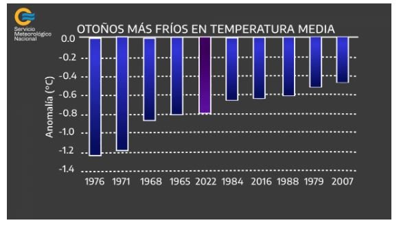 - No se registraba un otoño tan frío desde 1976 en Argentina, con una anomalía de temperatura de -0,8°C. Le siguen por detrás los otoños de 1965 y 1968.