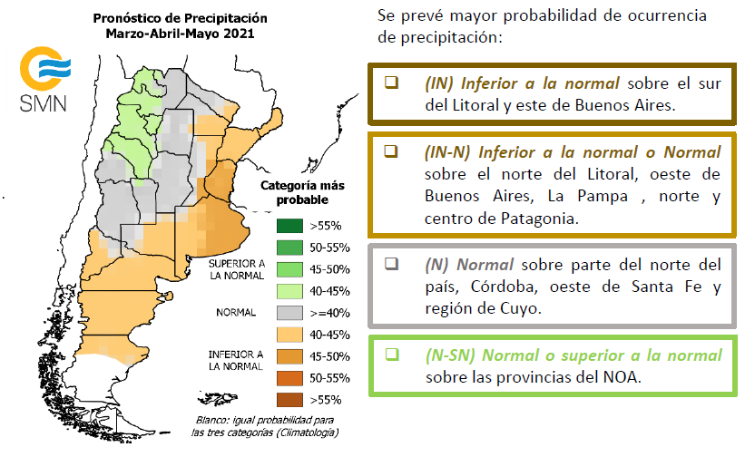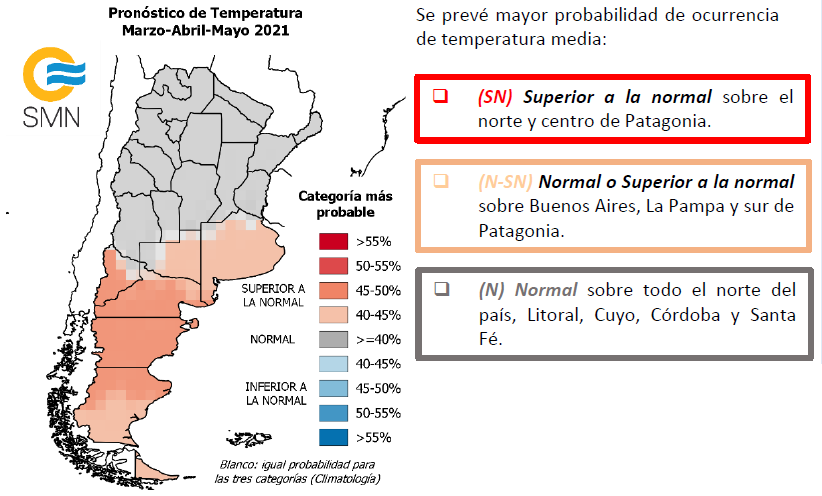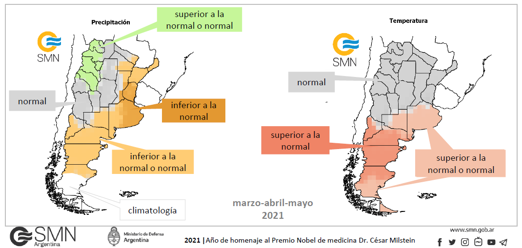 El Servicio Meteorológico Nacional emitió el pronóstico climático para marzo, abril y mayo de 2021.