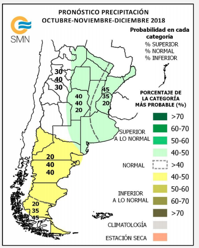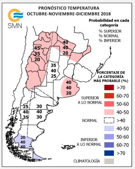 - Normal o superior a la normal sobre el este de Salta, Formosa, Chaco, Santiago del Estero, Córdoba, oeste de Santa Fe, oeste de Buenos Aires y este de La Pampa.