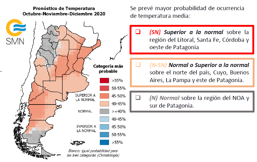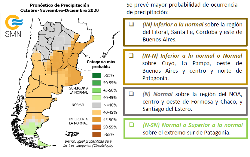 Pronóstico climático para el trimestre octubre, noviembre y diciembre de 2020